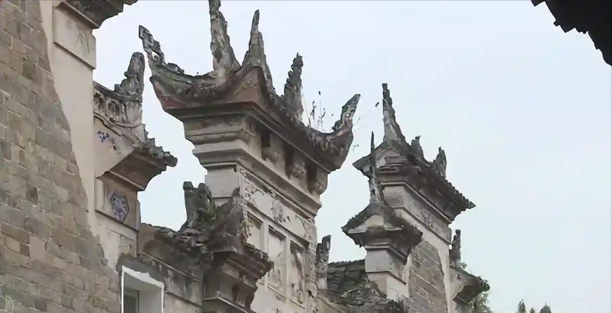 大门口处房屋建筑规模最大,共有三层,还有戏楼,二层圆厅顶上有亭,两边是客厅、以及花园。虽然经历了几百年时光洗礼,至今建筑保存较为完好,门窗雕刻工艺、飞檐翘角装饰、墙上绘制壁画至今清晰可见,是目前云阳建筑年代最久远,保存最完好的古建筑之一。